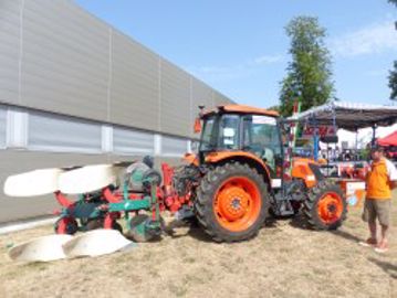En photo de haut en bas : Bernard Rocha, le stand Massey Ferguson, Kubota Agricole avec la présence du champion d'Europe de labour Sébastien Raguet, Emeline et Karine Schneider.