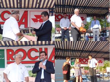Patchwork de photos : le président de Kubota Europe, Nobuyuki ISHII, remercie Bernard Rocha, le plus ancien concessionnaire de la marque, pour les 47 années de partenariat. En dessous, Hervé Gérard-Biard, directeur de la division "tracteurs" de Kubota Europe, indique que de nouvelles pages sont encore à écrire avec l'entreprise Rocha. La société Husqvarna, partenaire de Rocha depuis 1978, remet, avec son directeur commercial Fabrice Pinel, une tronçonneuse HVA 65, un beau millésime de la marque, et invite Bernard Rocha et deux autres collaborateurs à visiter les usines en Suède et découvrir Stockholm. Le dirigeant de Minerva Oil, Olivier Lafarge, remet à Karine et Emeline Schneider quatre places pour assister à la finale du trophée auto du GT Tour au Castelet les 24 et 25 octobre.
