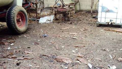 Aux pépinières Chantrier, à Mortefontaine (60), sous la violence de l'impact de la grêle, la toiture de ce hangar a été projetée au sol par petits morceaux. PHOTOS : PÉPINIÈRES CHANTRIER