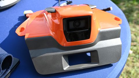 Mais la particularité de ce robot, c'est qu'il se dote de la vision grâce à un module intégrant une caméra que l'on vient clipser sur la partie avant de la machine. Cette caméra redonne à la marque Husqvarna une longueur d'avance sur ses concurrents, car elle a la capacité de voir aussi la nuit, ce qui guide le robot dans ses différentes missions.