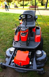 Enfin, les professionnels ont pu apprécier le tout dernier rider de tonte articulé à batterie FM 410i. Doté du plateau de coupe Combi 112i, il offre une largeur de coupe de 112 cm. Ce rider est emblématique de la nouvelle génération de matériels professionnels Husqvarna : 100 % électrique, il embarque six moteurs, quatre pour l'avancement et deux pour la coupe. Silencieux lors de ses déplacements, il offre une transmission avec un fort couple et sans aucun système hydraulique, donc avec un entretien simplifié. Sa batterie fixe de 9,6 kWh lui donne une autonomie de tonte de six heures en continu (moins dans une végétation haute et dense). Ce modèle électrique génère moins de vibrations que ses homologues à moteur thermique, ce qui augmente le confort du conducteur, installé sur un siège tout confort à suspension et accoudoirs. Le tableau de bord fournit des indications sur la vitesse, les phares ou encore le niveau restant des batteries. Ce rider offre trois vitesses d'avancement et trois vitesses de tonte pour s'adapter à chaque chantier. Enfin, son plateau de coupe frontal est relevable pour faciliter le remisage, le nettoyage ou l'entretien des lames. *