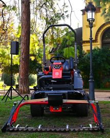 Rider professionnel P 500DX équipé de la nouvelle double barre de fauche avec réciprocateur (©Matériel & Paysage)