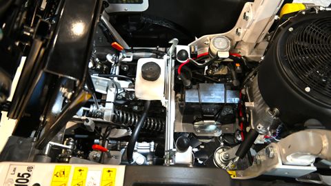 Au cœur de cette autoportée, un grand ressort-tendeur, relié au plateau de coupe, se raidit automatiquement dans les pentes pour réduire le soulèvement de la roue arrière en descente ou dans les freinages. En allégeant le poids sur la roue arrière, ce stabilisateur antilevage garantit des manœuvres rapides et précises dans les virages et les demi-tours. Ce système renforce également l’adhérence au sol et permet à la ZM d’affronter des pentes jusqu’à 40 % (avancement) ou de tondre dans les côtes jusqu’à 30 % de déclivité. Enfin, la zero-turn embarque un moteur bicylindre Briggs & Stratton 8290CXi développant 23 ch. La productivité du modèle ZM120 est annoncée à 13 000 m2/h, et celle de la ZM140 à 15 000 m2/h.