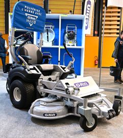 Toutes deux sont équipées du plateau de coupe Grin Maxi 3, monté sur un châssis produit par le constructeur Grillo. Ce plateau sans ramassage est le plus performant du marché, selon son fabricant. Grâce à ses lames spécialement profilées et combinées à une ailette centrale, les trois carters indépendants pulvérisent l’herbe coupée, la transformant en résidus très fins. Notons également que le châssis du Maxi 3 est indépendant de celui de la tondeuse, à laquelle il est relié par un joint articulé spécial.