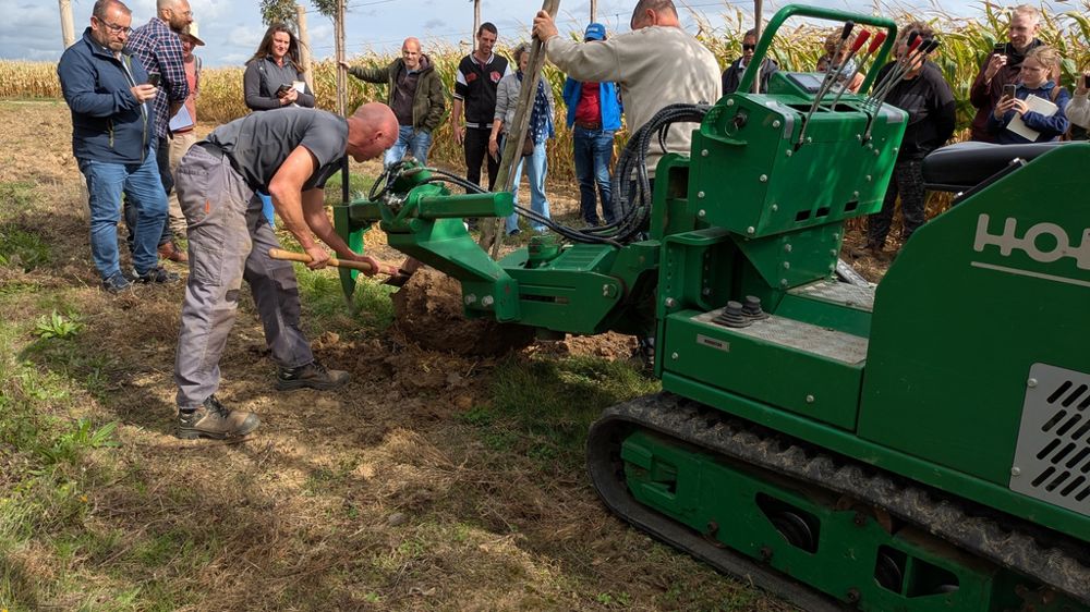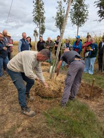 Mi-septembre, quelques semaines avant le début de la période d’arrachage des arbres en pépinière, Laurent Chatelain accueille dans sa pépinière une cinquantaine de visiteurs venus découvrir le site. Organisée par le CAUE 77 (Conseil d’architecture, d’urbanisme et de l’environnement de Seine-et-Marne), cette visite est l’occasion pour les participants d’obtenir des conseils sur le choix des arbres, sur les erreurs à éviter et les points à surveiller. Pour assurer la bonne reprise après plantation, la qualité du système racinaire est un élément déterminant. Une démonstration d’arrachage est organisée. L’opportunité d’observer la structure racinaire des végétaux et d’échanger autour des contraintes liées à l’arrachage.