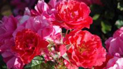Ce rosier paysager à fleurs groupées rose fuchsia fleurit en continu de mai jusqu'aux gelées.