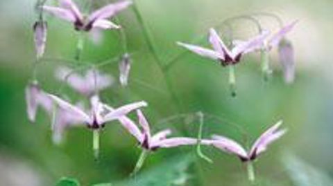 Cet épimedium chinois offre une myriade de fleurs au printemps, avec des pétales violet foncé et sépales étoilés rose bonbon.