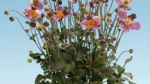 Compacte et très florifère, cette anémone rose clair atteint 50 à 60 cm de haut.