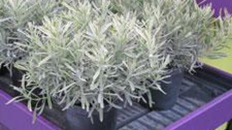 De taille moyenne, cette lavande aux tiges initialement vert gris se colore de rayures jaunes et crème grisé.