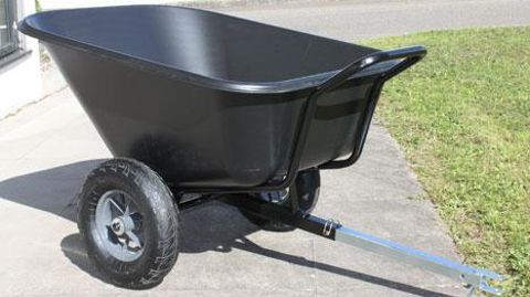 Fabriquée en France par Haemmerlin, cette brouette se transforme en remorque grâce à son timon galvanisé rétractable et s'adapte à tout type de véhicules autoportés, tondeuses ou quads.