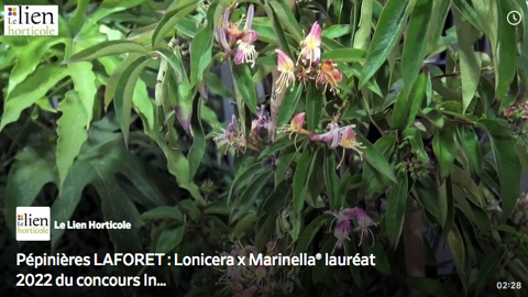 Lors du dernier Salon du végétal du 13 au 15 septembre à Angers (49) s’est tenue la remise des prix du concours Innovert 2022. Le jury a récompensé les Pépinières Laforet pour Lonicera x Marinella®.