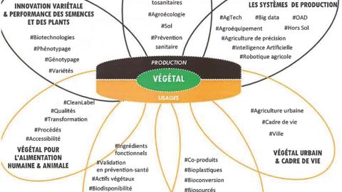 • sur les marchés aval, c’est-à-dire les usages : végétal pour l’alimentation humaine et animale ; nutrition, prévention santé, bien-être et cosmétique ; végétal urbain et cadre de vie.