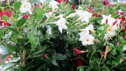 Infléchissement Le Dipladenia est bousculé par d'autres familles de plantes compatibles en intérieur et en extérieur. PHOTO : PASCAL FAYOLLE