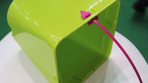 Soparco (61) proposait au concours Innovert son anse de portage pour faciliter la préhension du contenant, sans nuire à l'esthétique de la composition. Fine, légère (9 g) et souple, elle s'insère sur les boîtiers (encoches) Soparco G2 ou G4 sur tous les contenants injectés à boîtiers (clayette, jardinière, pot rond-carré, coupe...) du fabricant. Deux ergots permettent l'accroche de chromos.