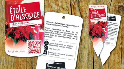 S'identifier Étiquettes, chromos : le visuel de la marque Étoile d'Alsace est décliné en outils d'aide à la vente des poinsettias.