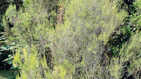 Pied spontané et taillé masquant un grillage.