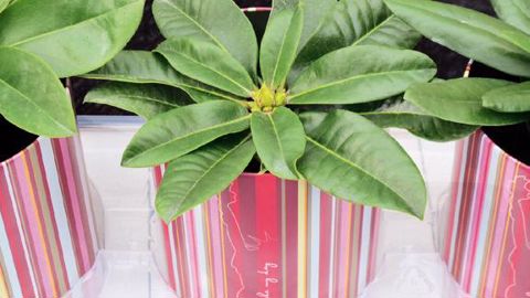Le marketing à fondLe concept « Ms. Liberty » des pépinières Leybaert (Belgique) : un rhododendron uniflorum dans un pot zébré et coloré.
