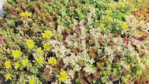 Une gamme qui s'étoffe La production s'est concentrée au départ sur la production de minimottes avec trois espèces de Sedum, pour s'accroître progressivement. Ici Sedum floriferum.
