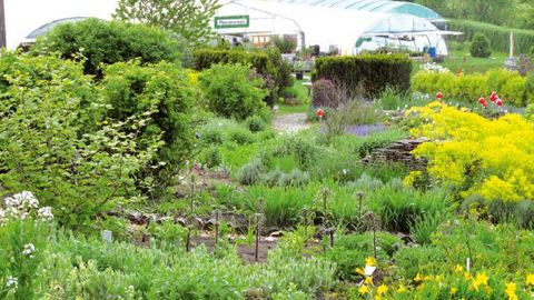 Les pivoines ne sont pas oubliées avec une grande partie du jardin qui leur est consacrée. Ça et là, des sièges et des bancs invitent à faire une pause pour mieux profiter de l'environnement. La découverte prend du temps dans ce terrain un peu escarpé. Et le visiteur en a pour son argent (l'entrée est à 4 euros). Une dépense qui ne rebute pas ceux qui viennent jusque dans ce coin un peu à l'écart du village, en pleine campagne. Du haut du jardin, on domine l'exploitation, avec ses tunnels et ses aires de production. Et chacun est ensuite libre de se promener dans les tunnels pour faire ses emplettes. Une belle idée.