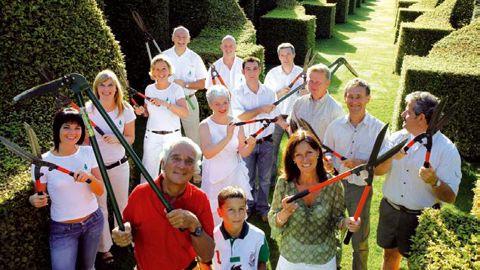 L'équipeTreize personnes, dont six jardiniers, travaillent au manoir, détenu par la famille de Patrick Sermadiras (au premier plan) depuis cinq siècles.