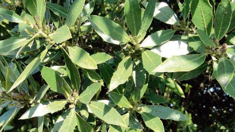 Les individus sont mâles ou femelles. La floraison très mellifère, abondante mais discrète, en petites grappes latérales, débute dès février et attire de nombreux insectes. Les fruits sont de petites drupes obovales, d'abord rouges, puis noires à la maturité, consommées et dispersées par beaucoup d'animaux.