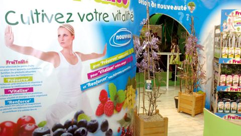 La gamme Fruitalité®, ici présentée sur un salon, a pour objectif de promouvoir les petits fruits en mettant en avant leur bénéfice pour la santé. Une initiative des pépinières Minier. PHOTO : PÉPINIÈRES MINIER