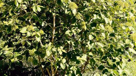 V iburnum lantana, arbuste à la croissance juvénile rapide, a des feuilles persistantes dans ses toutes premières années, puis devient caduque. À découvert, il forme un grand buisson au port assez dense et régulier, en cylindre, d'environ 3 m de haut et 2 m de diamètre. Il s'étend assez souvent en drageonnant, ou par marcottage spontané. Les jeunes rameaux, bourgeons nus et feuilles de la « viorne cotonneuse », surtout dessous, sont garnis de poils courts étoilés, serrés, formant un duvet doux au toucher. Les feuilles sont opposées, pétiolées, épaisses, nervurées, entières, dentées, longues de 10 à 15 cm, elliptiques. Les boutons sont crème. La floraison - des ombelles terminales de fleurs blanches fertiles - est abondante, vite fanée et sans parfum agréable, mais attire de nombreux pollinisateurs. Les baies ovoïdes, d'abord vertes, rougissent. La pulpe est prisée, seule ou avec l'ingestion des graines, par des oiseaux et mammifères communs : fauvette, geai, merle, rouge-gorge, blaireau, fouine, renard. Le nombre de graines produit par sujet s'avère plutôt faible, le taux de graines dispersées plutôt bon, de nouveaux sujets se développant lorsque le hasard des lieux de repas ou de défécations les a placées en un endroit favorable.