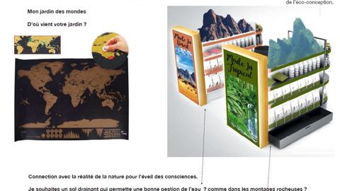 « L'idée est de présenter l'origine des produits, et quel impact ils ont sur l'environnement », explique Manuel Rucar. De plus en plus de particuliers souhaitent comprendre d'où vient ce qu'ils achètent. « Le classement de ces produits s'effectue par biotope selon une grille géologique ou biologique. » Le tendanceur propose ainsi de jouer sur les visuels pour montrer l'origine des divers paillages (cosses de cacao, fibre de coco, ardoise...), en valorisant le fait qu'ils sont naturels, ou encore l'utilisation des engrais : des illustrations de forêt tropicale humide pour les fournitures de plantes de serres chaudes, par exemple. La scénarisation consiste à afficher l'ensemble de la gamme et augmenter la lisibilité du rayon en partant du bénéfice consommateur ou de l'histoire racontée plutôt que d'opter pour une segmentation purement technique. Cette orientation incite à faire disparaître le stock des rayons pour ne laisser que le showroom.