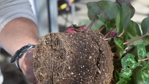Cette année, les cyclamens ont été très longs à démarrer ; malgré tout, leur système racinaire s’est révélé vigoureux. © A. Mabire