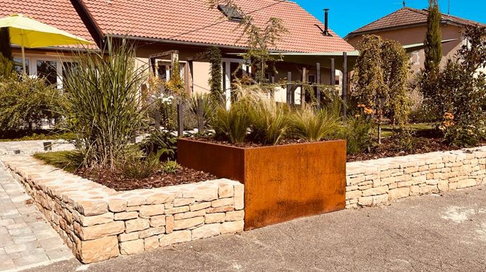 Enfin, la société meusienne Eden’Eveil s’est distinguée pour son projet « Gilbert et Marguerite », un ensemble réussi de petites terrasses à l’avant d’une maison. Son bassin bucolique, l’harmonie de ses matériaux (arches en travers de chêne, murs en pierre de Bourgogne, bacs en acier Corten, piquets d’ardoise) et son beau mélange de plantes vivaces lui ont valu un prix « Coup de cœur » bien mérité !