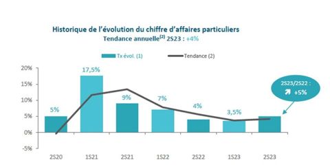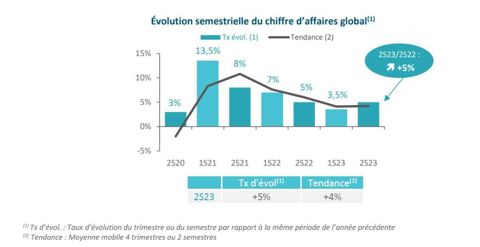 En 2023, les entreprises ont un généré un chiffre d’affaires en hausse de 3,5 % au premier semestre puis de 5 % au deuxième avec une période estivale particulièrement dynamique (+ 5,5 %). Rappelons ici que ces hausses sont établies par rapport au chiffre d’affaires constaté à la même période de l’année précédente (2022). La croissance globale mesurée sur l’année est de 4 %. Dans le détail, l’activité d’entretien des jardins et des espaces verts est la plus dynamique avec une hausse de 6,5 % sur le dernier semestre, tandis que l’activité de création s’est accrue de 4 %. Concernant les différents marchés du secteur, celui des professionnels privés (entreprises, immobiliers, syndics, HLM…) détient la palme avec une progression de 6 % sur le deuxième semestre 2023. En seconde position, l’activité auprès des particuliers a crû de 5 % et se redynamise après deux précédents semestres moins florissants.