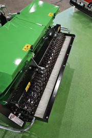 Le semoir, de son côté, effectue simultanément le réensemencement du terrain en faisant tomber les graines dans les sillons, avec un débit réglable. Son rouleau arrière se charge d’enfouir les graines et s’accompagne d’une brosse de nettoyage. Un rouleau lisse est également présent à l’avant.