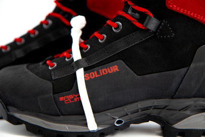La chaussure de grimpe Tree Climb est la grande nouveauté cette année de l'entreprise familiale normande Solidur, spécialiste des Équipements de Protection Individuelle (EPI). Équipée du système Easy Climb, celle-ci permet de fixer une corde Dyneema UHMWPE de 4 mm dans trois zones différentes de la semelle (avant, arrière, ou double), offrant ainsi une adaptabilité maximale selon la position de travail et permettant un appui précis et sécurisé sans nuire à l’adhérence.