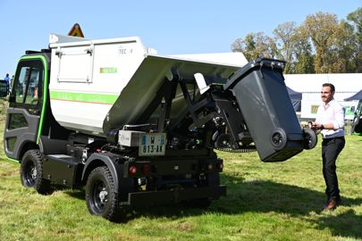 Enfin, une dernière version, développée avec le fabricant italien Tecam, est dédiée à la collecte des ordures en chargement arrière ou latéral, via une trappe repliable. La cuve étanche permet aussi la collecte des liquides résiduels. La poubelle est chargée automatiquement, et la benne principale se relève à la verticale, via une télécommande, pour sa vidange.