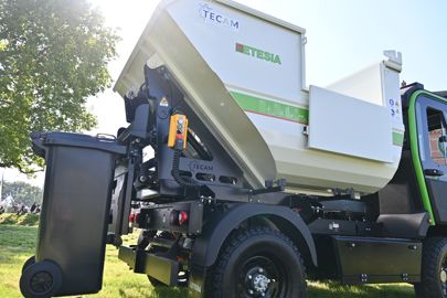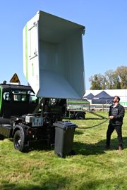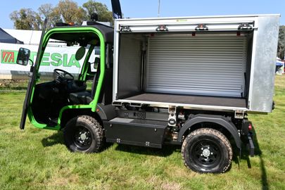 Le constructeur français Etesia décline son véhicule électrique ET-Lander en 4 versions. La première reçoit une benne, d'une capacité de 1 t, déposable au sol grâce à un système hydraulique à double vérin. Ce modèle, conçu à la suite de demandes d'utilisateurs, sera finalisé pour 2025.