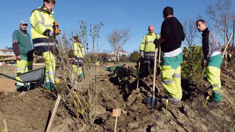 Les résidents du foyer Les Hirondelles travaillent dans un établissement et service d'aide par le travail (Esat) où certains sont spécialisés dans les espaces verts. Ces derniers sont intervenus lors d'une journée de plantations dans le Jardin des vents. PHOTO : JOHN RIDDEL