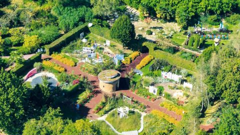 Vue aérienne sur les jardins éphémères installés au coeur du jardin botanique pédagogique de 3 hectares. PHOTO : COUTANCES