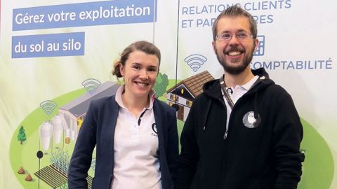 Karine Cailleux (responsable communication) et Brice Texier (co-fondateur et CTO directeur technique) chez Ekylibre. L'entreprise a développé un logiciel qui permet, en temps réel, de gérer petites ou grandes exploitations sans aucune saisie. PHOTO : ODILE MAILLARD