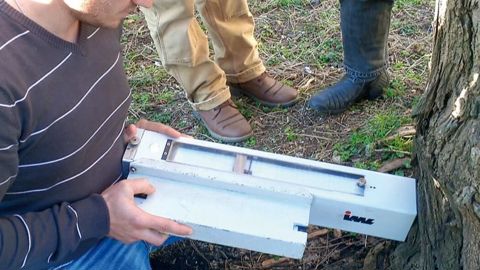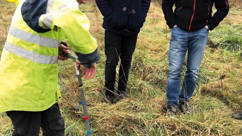 Analyse du sol sur le terrain avec Thomas Bur, dirigeant de la société Urbasense.