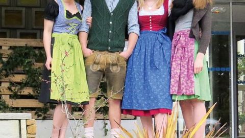 De gauche à droite : Johanna Malzer, apprentie dans le secteur des vivaces, Michael Neumeler, apprenti jardinier, Wanda Breitenhuber et Marina Dietrich, apprenties fleuristes, ont représenté la jeunesse horticole allemande durant le 40e anniversaire du jumelage. ODILE MAILLARD