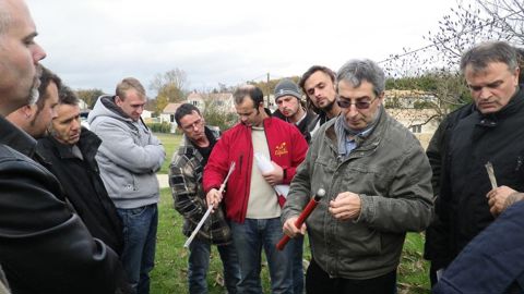Sur le manche de cet échenilloir, on distingue les traces noires de sortie du courant. MSA DES CHARENTES