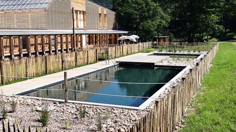 Le dernier aménagement de ce type a été achevé ce printemps. Il s'agit d'une piscine (5 x 11 m + un petit bassin) avec filtration naturelle d'un camping intercommunal axé sur l'intégration paysagère et la protection de l'environnement pour attirer une clientèle sensible à cette approche, comme les clients d'Europe du Nord. « Toutefois, en France, si on parle beaucoup de développement durable, concevoir une piscine avec filtration naturelle ouverte au public reste un parcours du combattant au niveau administratif », fait remarquer Bertrand Mangin. « Il a fallu négocier avec l'Agence régionale de santé qui nous imposait des mesures draconiennes : la création d'un pédiluve, l'interdiction des UV, la limitation du nombre de baigneurs à un instant T (pas plus de trois), une analyse d'eau par semaine, le renouvellement régulier de l'eau, ainsi que diverses modifications au fur et à mesure de l'avancement des travaux. Techniquement, le procédé est au point, les analyses d'eau des premiers mois de fonctionnement le prouvent, mais l'administration reste très réticente. »