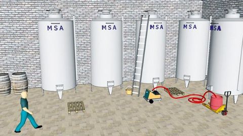 Du 17 au 19 janvier dernier, les visiteurs du salon professionnel de référence des matériels et services pour les productions végétales ont pu tester un exercice par simulation dans un chai. L'épreuve consistait à emprunter une échelle accotée à une cuve de 5 m de haut et à verser le contenu d'un seau dans le réservoir. Physiquement au sol et casque sur la tête, chaque candidat bénéficiait d'une vue à 360° dans toutes les dimensions. On parle de 3D ou de simulation en réalité virtuelle. Il s'agit, avec des images de synthèse synchronisées et mises en relief, d'immerger une personne au coeur d'un prototype dans une situation donnée, à l'échelle 1. Pour cet exercice, la MSA49 a choisi une situation de travail, Laurent Graton, de la société Optimoo (*), à Mazé-Milon (49), a préparé l'environnement 3D et le scénario a été réalisé à Laval (53) par Alexandre Bouchet, du Pôle Clarté. Au fur et à mesure de l'ascension, l'opérateur percevait toutes les sensations de hauteur, de vide, de vertige... Fatalement, au moment de manipuler le seau, en haut, la chute était au rendez-vous : il fallait lâcher les mains des montants pour verser le liquide. Comme c'est le cas en situation réelle, personne n'a vérifié la fixation de l'échelle à son extrémité haute : les crochets existent mais ne sont pas utilisés, les montants sont juste posés sur une forme arrondie, du coup le déséquilibre est fatal. Beaucoup agissent trop vite sans précaution ni réflexion. Dans la réalité, l'accident aurait été très grave (les chutes de hauteur constituent la 3e cause d'accidents mortels en agriculture).