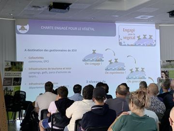 La formation était au cœur de la journée. Enfora, CNFPT, Fredon… plusieurs organismes présents ont décliné les enjeux et donc les offres pressenties en nouvelles formations et services. Avec de multiples partenaires – chacun expert dans son domaine – concrètement, ils conçoivent des formations sur les pratiques de base, mais élargissent leurs catalogues avec des journées thématiques et des stages « nature en ville », pour la lutte contre les îlots de chaleur, sur la gestion différenciée de l’eau, l’animation dans les jardins collectifs, les jardins thérapeutiques, la désimperméabilisation des cours d’école, la prévention des risques, ou encore le fleurissement sobre en eau et l’acceptation de la flore spontanée dans l’espace public…