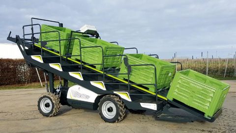 Cette plate-forme de travail en multi-palliers permet d'intervenir à différentes hauteurs. Automotrice, elle fonctionne avec un moteur 3 cylindres de 1 100 cm3, offre une vitesse de travail de 60 à 1 300 m/h et compte une alimentation électrique pour les sécateurs. Elle a reçu la médaille d'or « machinisme, automatisme ».
