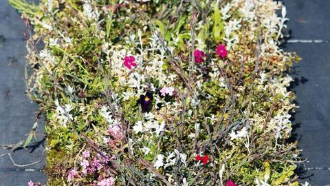 Présentés lors des Assises régionales du fleurissement de la région Centre, à Bourges (18), fin septembre dernier, les Carrés de la pépinière Plandanjou sont des tapis de fibre de coco contenant 3 cm de substrat destinés à la végétalisation instantanée des massifs, ronds-points ou pieds d'arbres. Aspect immédiat et désherbage réduit sont les objectifs visés par les tapis végétaux, que ce soit pour ces nouveaux venus ou ceux qui existent déjà sur le marché. Ces Carrés se déclinent en deux mélanges de vivaces, l'un plus florifère, le Carré Magic, l'autre plus résistant au sec, le Carré Sun. Les deux existent en carrés de 52 x 27 cm ou en tapis de 2 x 1 m. Vendus avec un taux de couverture de 90 % et une hauteur de végétation de 15 à 20 cm, ils sont essentiellement plantés d'Arabis, Alyssum, campanule des Carpathes, Dianthus, Nepeta, saponaires, thym, Sedum, etc. Les petits tapis pèsent environ 2,5 kg.