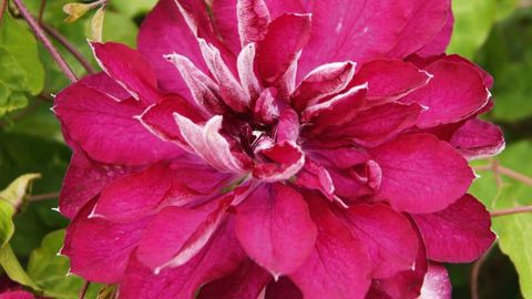 CLEMATIS RED PASSION 'ZO11056' ET CLEMATIS GREEN PASSION 'ZO11050' PHOTO : TRAVERS