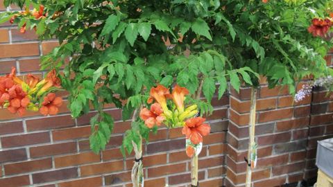 Couronnée d'une médaille d'or, cette bignone au port compact (1 m par an) déploie ses fleurs rouges sur ses pousses de l'année. Intéressante pour les balcons, les terrasses ou les petits jardins, elle peut être conduite en arbres, avec des tiges tressées.