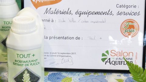 Des extraits de yucca pour tout soigner : ce produit est préconisé comme renforcement de l'action des fertilisants, à tous stades de la culture. La pépinière a développé ses propres expérimentations depuis 16 ans, en laboratoire puis en fabrication personnelle. À utiliser à des doses très faibles. Il a reçu le 3e prix à Aquiflor 2017 en matériels.