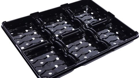 Modiform a lancé cette année une version revisitée de la série complète de packs thermoformés Universal. Le plateau de ces packs a également été amélioré. Grâce à la nouvelle conception, les angles ne se plient plus, ce qui permet d'éviter toute déchirure. Ce plateau favorise aussi l'automatisation. Il mesure 53,4 x 40,4 cm, pour 5,7 cm de hauteur. Sur une palette, 1 600 plaques peuvent être positionnées.